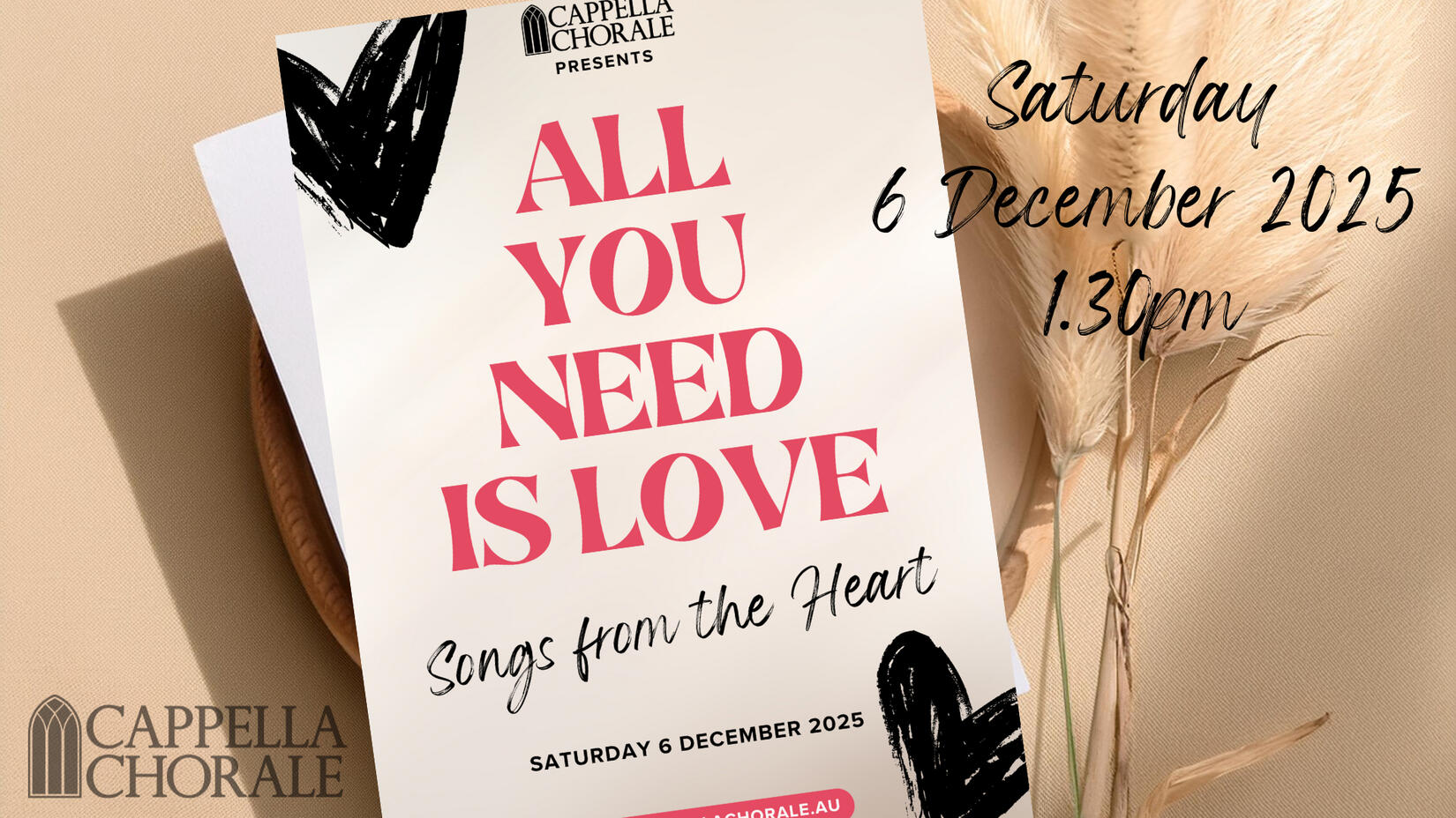 Love is in the air and love is all around! A concert not to be missed, All You Need is Love celebrates love as a many-splendored thing! Funds collected from concert entry are donated to our venue host, St Gerard Majella Church.