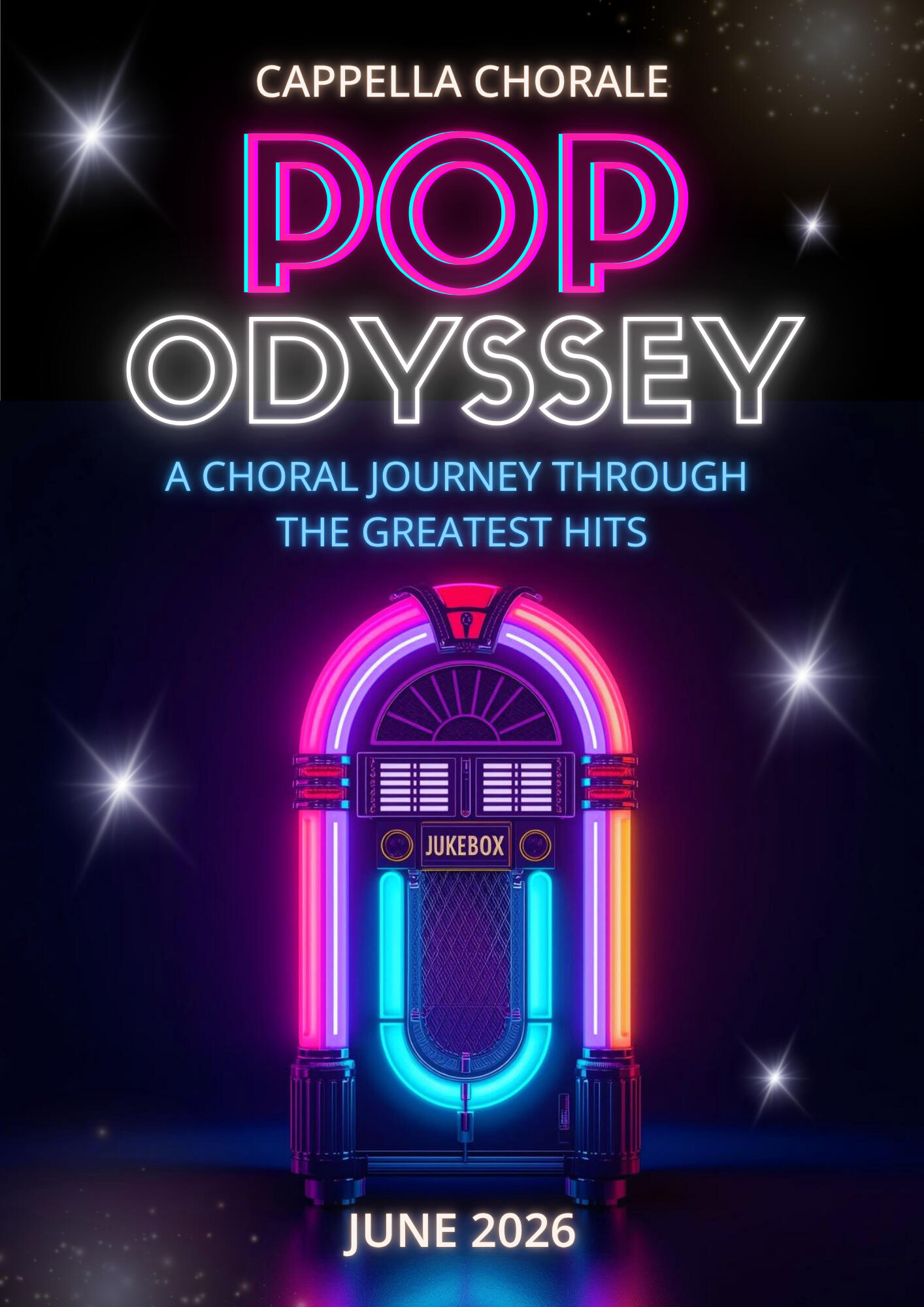 POP ODYSSEYGet ready to turn back the dial and turn up the volume - Cappella Chorale presents Pop Odyssey in 2026!This electrifying concert will showcase bespoke choral arrangements of the greatest pop hits from the 1950s to todayโs hottest tracks. Audiences will be swept on a nostalgic journey through the decades, celebrating songs defined by unforgettable melodies and glorious harmonies.From soulful ballads to irresistible bangers, this one-of-a-kind performance will capture the heart of every music lover. Whether youโre a lifelong fan of classic pop or hooked on modern chart-toppers, Pop Odyssey promises an uplifting, feel-good celebration of the soundtrack of our lives.